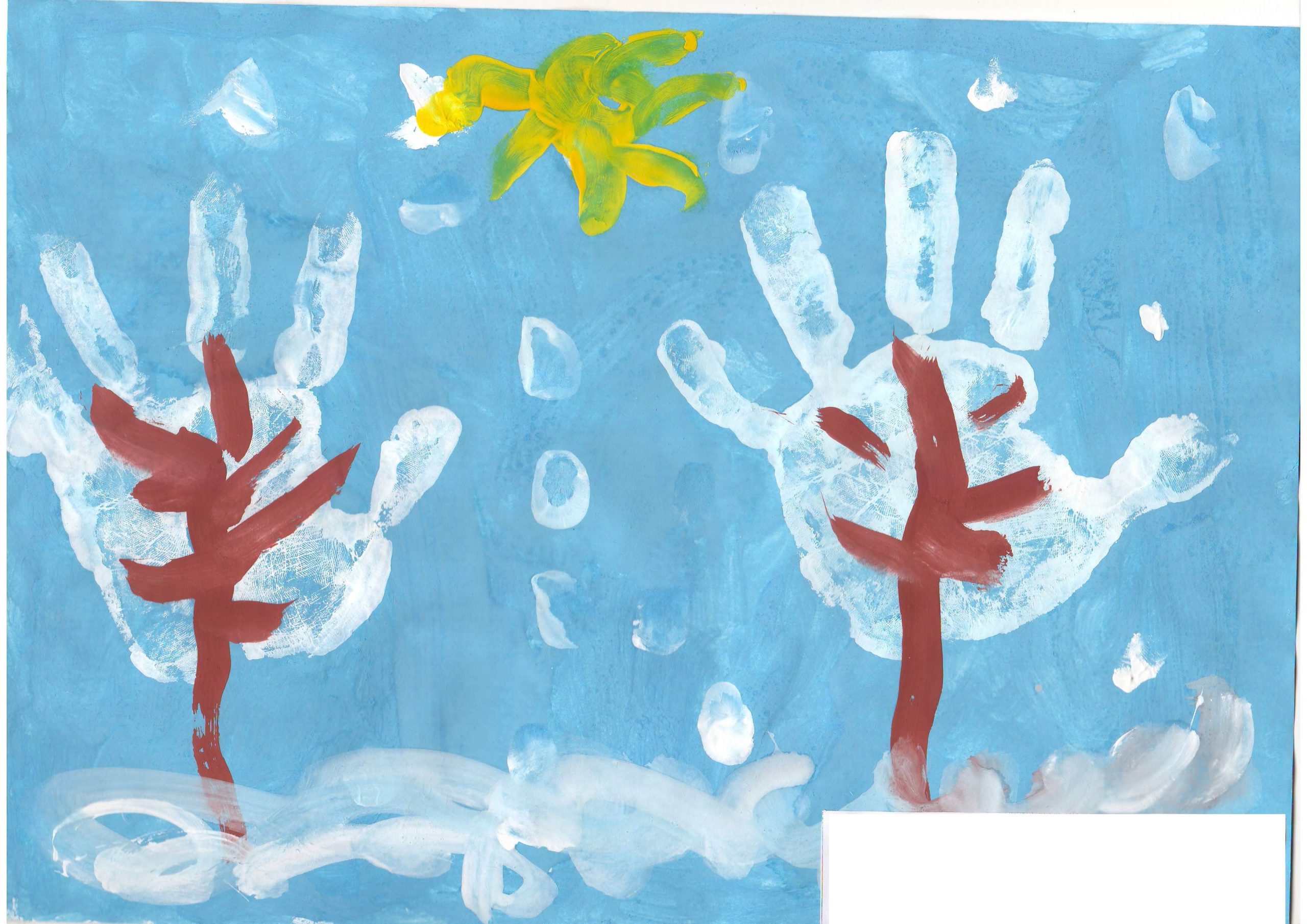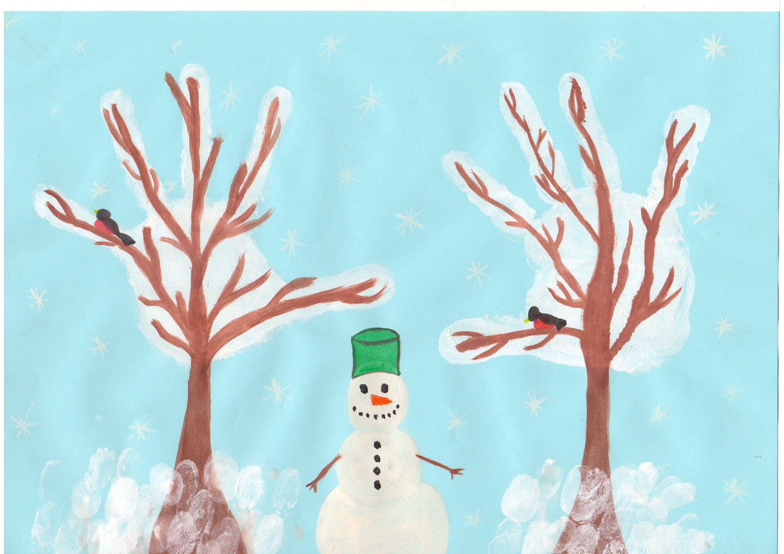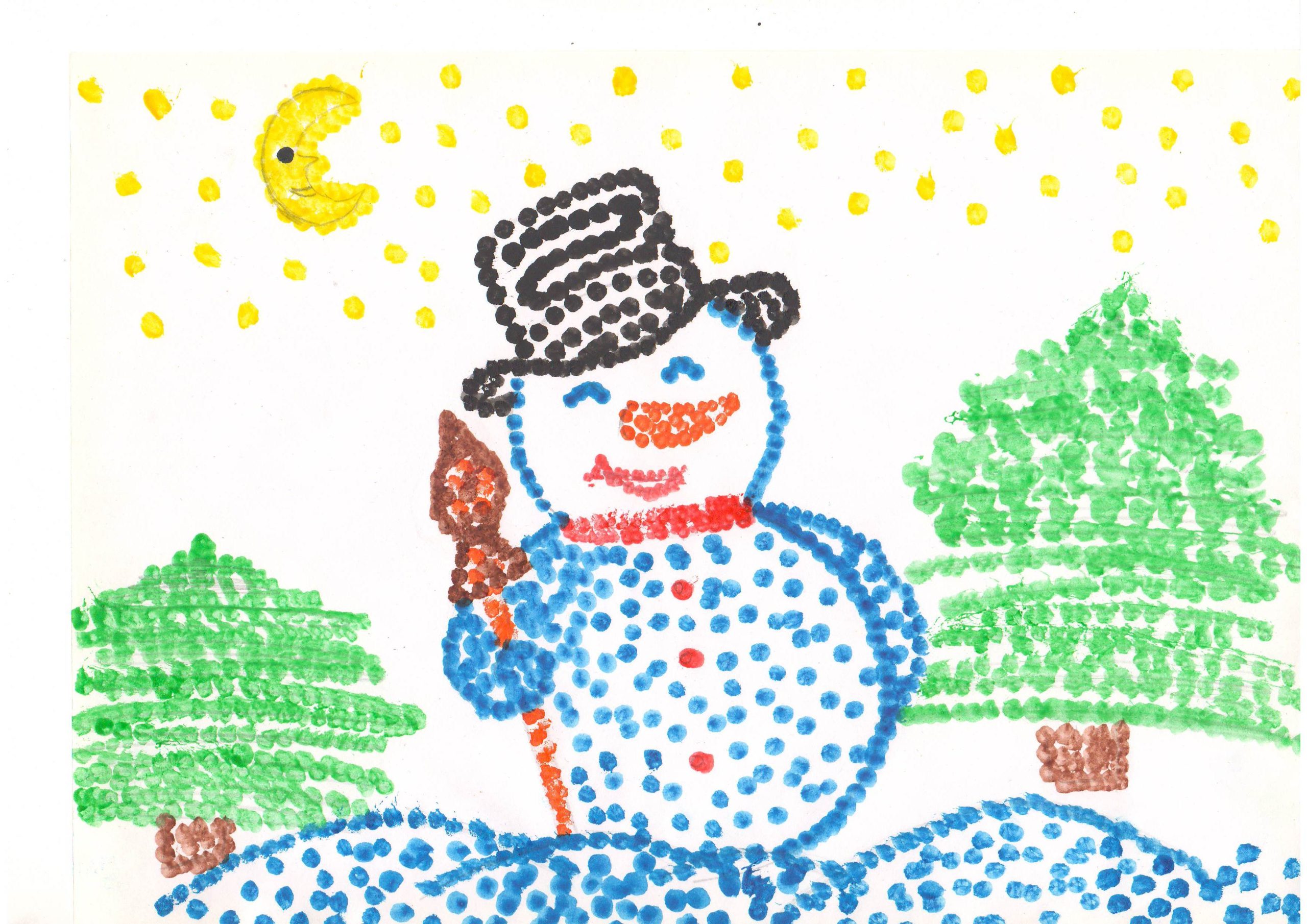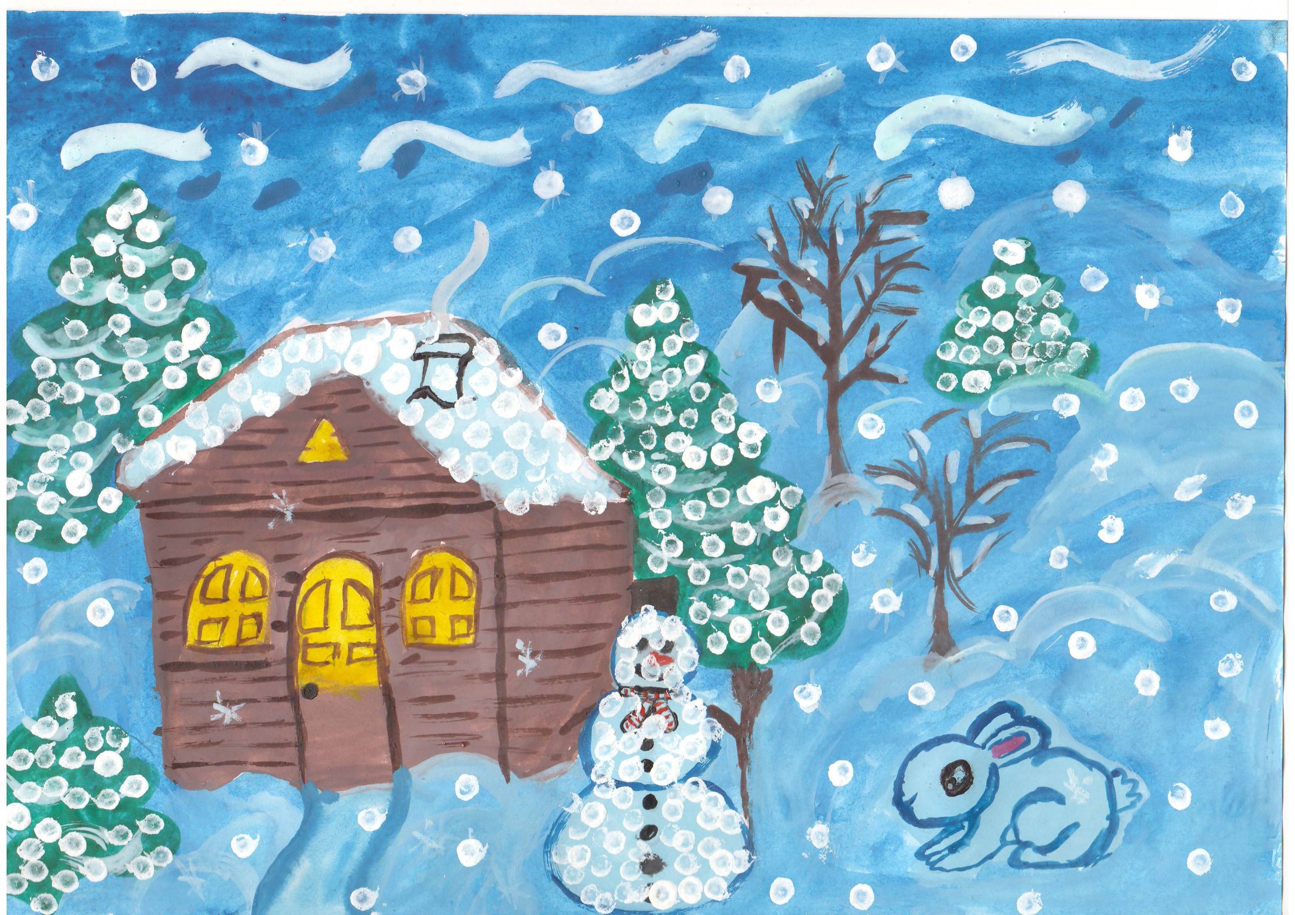 В своих работах дети на листе бумаги с помощью красок выразили свои представления о зиме, зимних развлечениях, прогулках, забавах, нетрадиционным способом рисования. Ребята рисовали пальчиками, ладошками, ватными палочками, оттиском поролона, солью и клеем , рисованием по точкам, набрызгами и другими интересными способами.