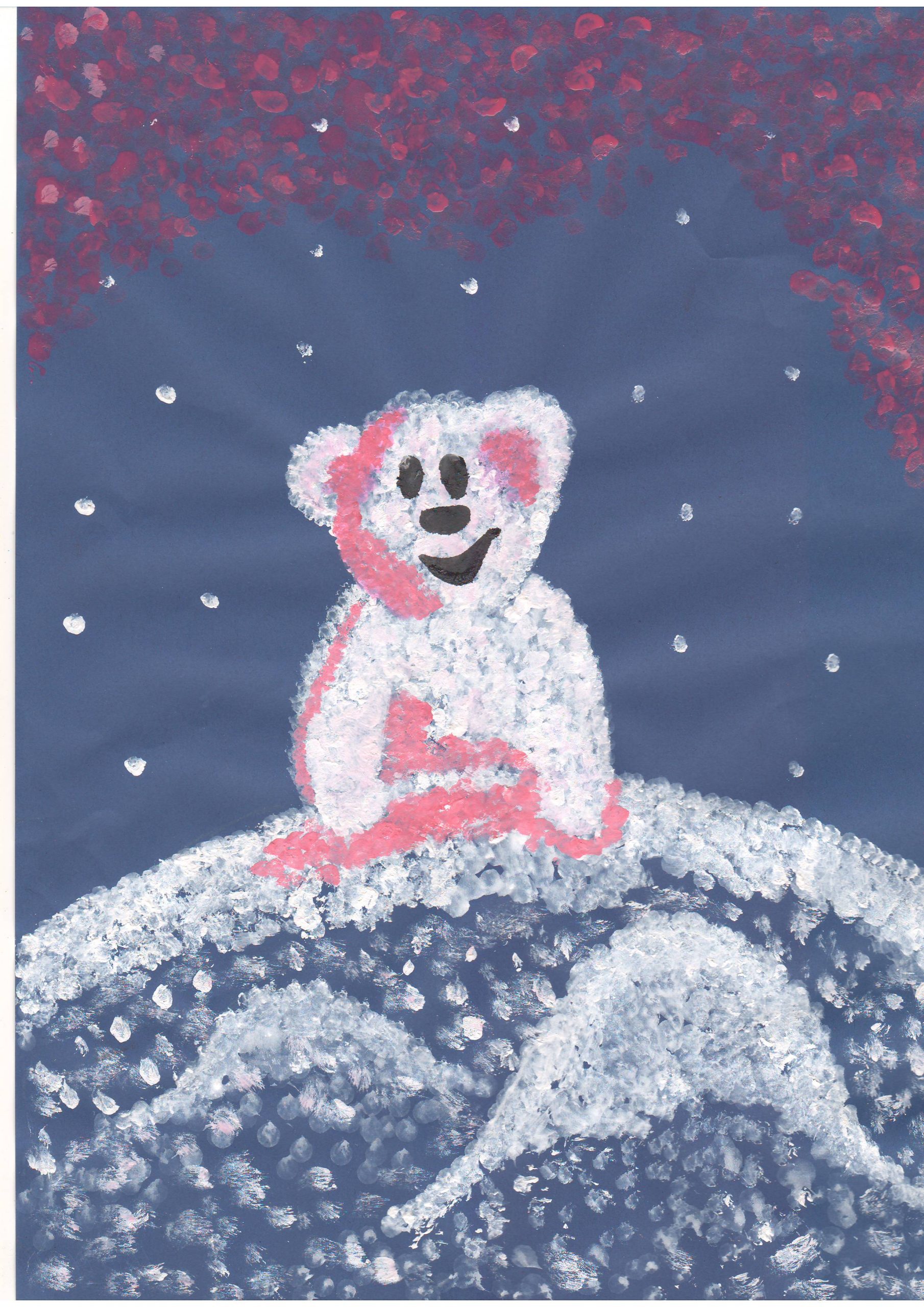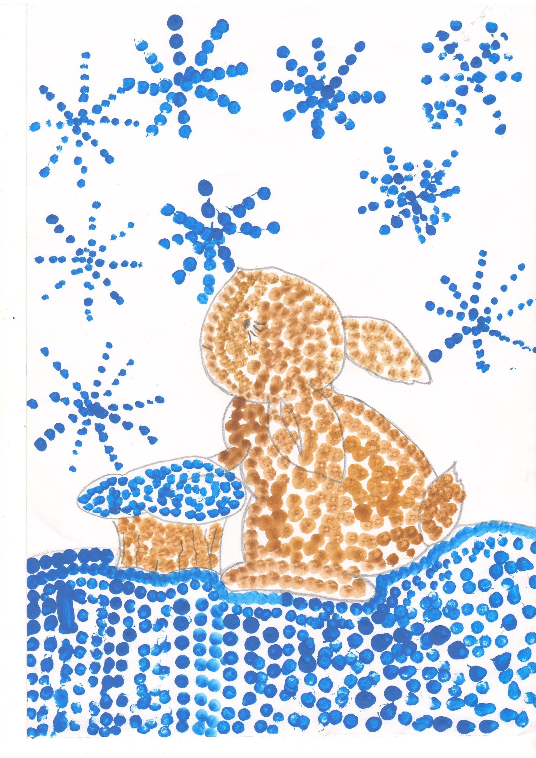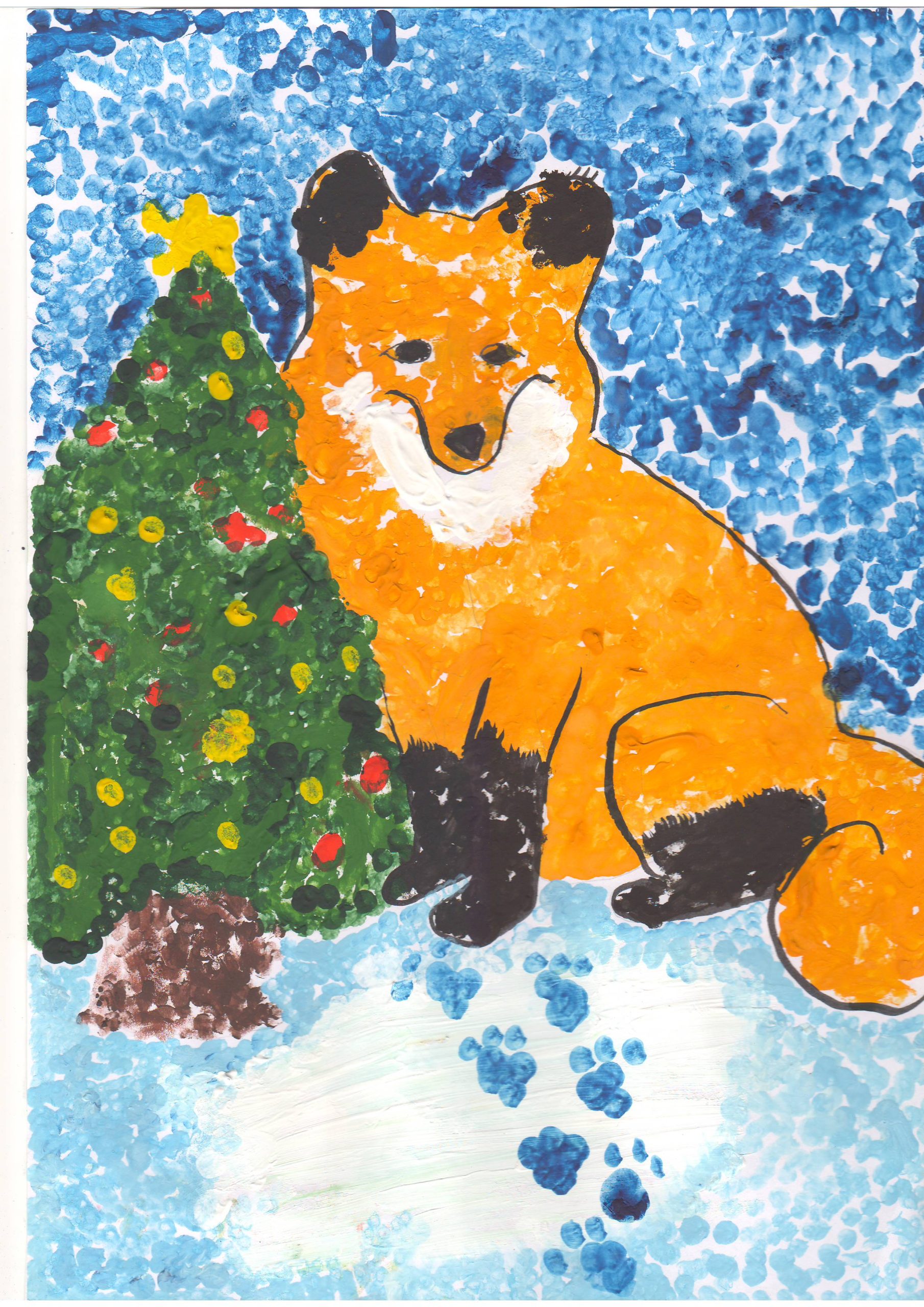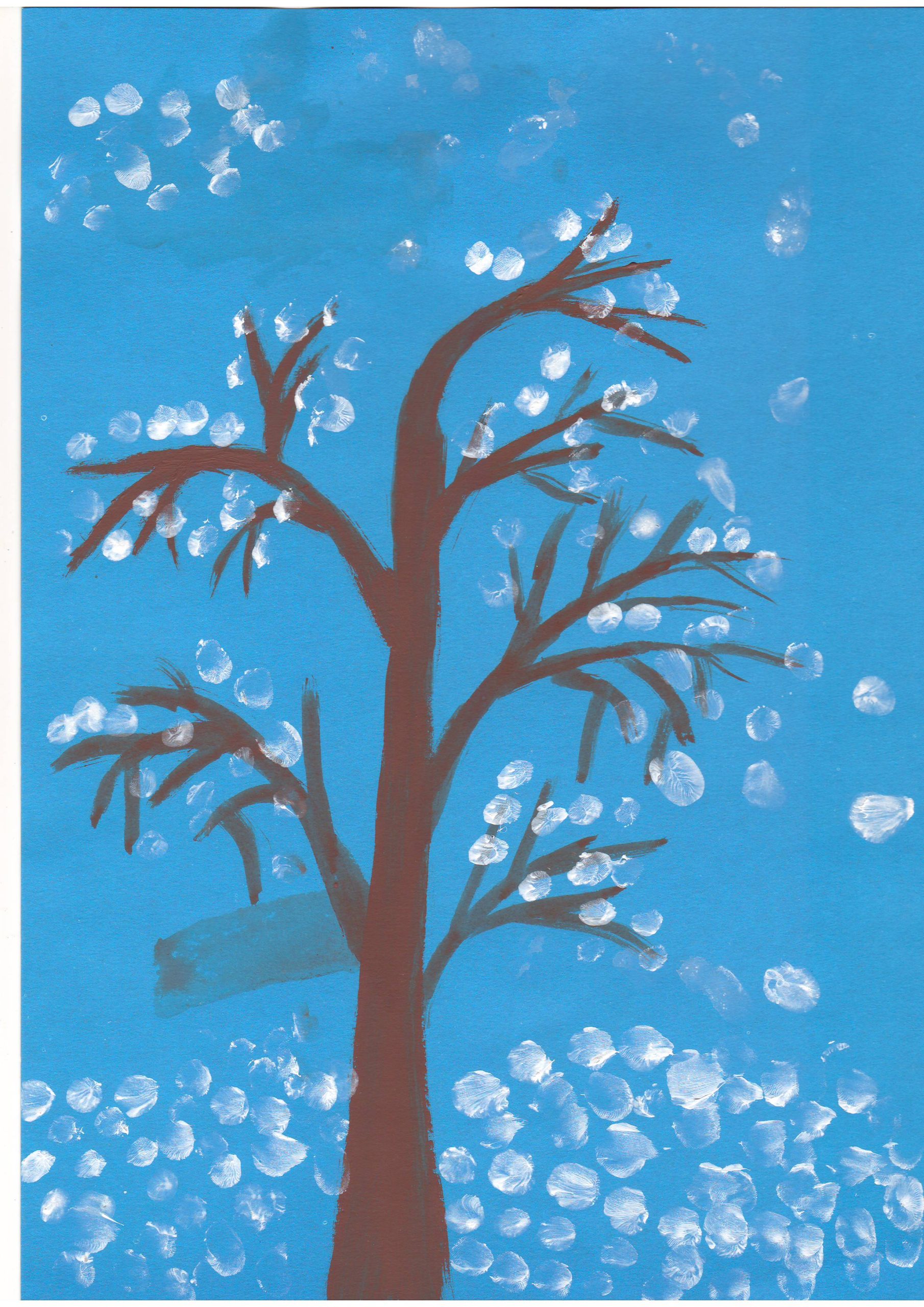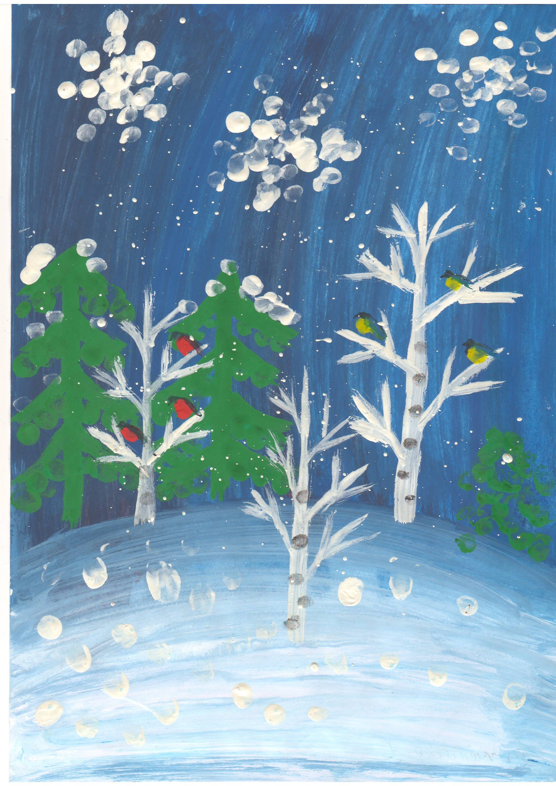 В своих работах дети на листе бумаги с помощью красок выразили свои представления о зиме, зимних развлечениях, прогулках, забавах, нетрадиционным способом рисования. Ребята рисовали пальчиками, ладошками, ватными палочками, оттиском поролона, солью и клеем , рисованием по точкам, набрызгами и другими интересными способами.